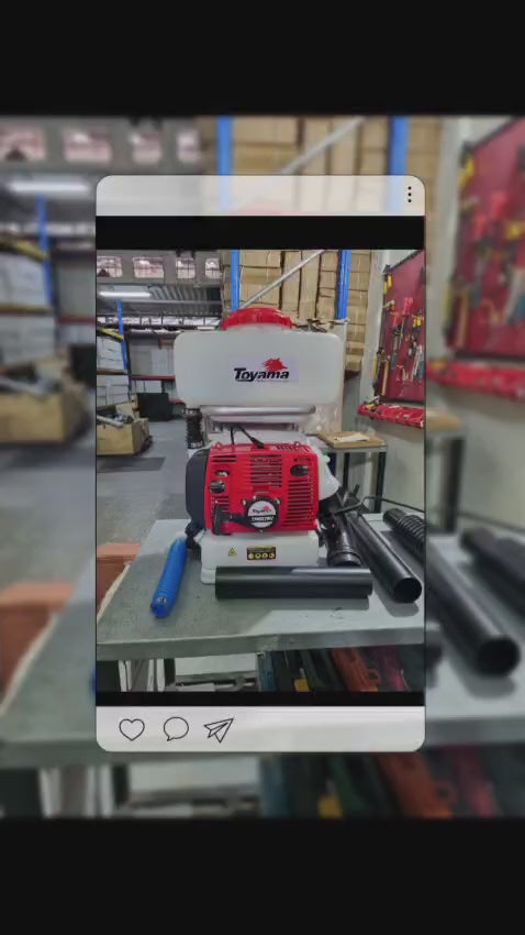 La Fumigadora de Cañón Toyama TMD57BU es una potente herramienta de aplicación agrícola para cubrir áreas amplias con gran eficiencia. Con motor de 56,5 cc de 2 tiempos, entrega 3,3 HP de potencia máxima, equipada con un tanque de 14 litros para solución y un tanque de combustible de 1,8 litros (mezcla gasolina + aceite).
