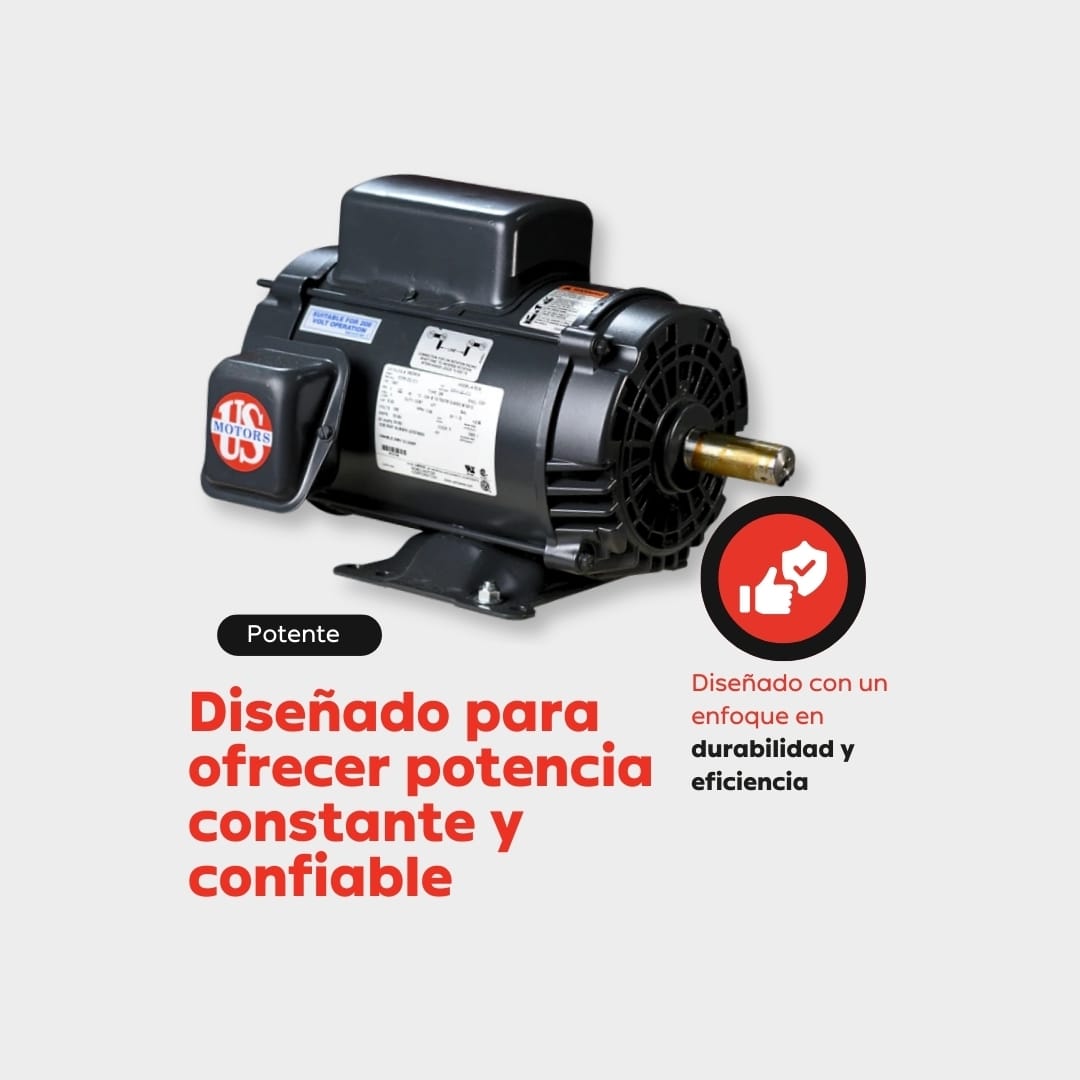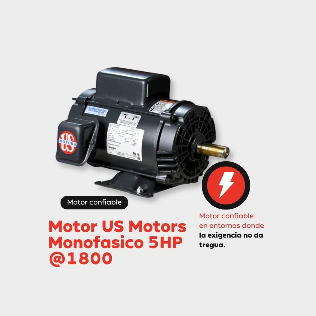 El Motor Eléctrico Monofásico U.S. Motors de 5 caballos de fuerza (HP) a 1800 RPM es la solución ideal para aplicaciones industriales, agrícolas y de construcción que requieren potencia, eficiencia y durabilidad en un solo equipo.